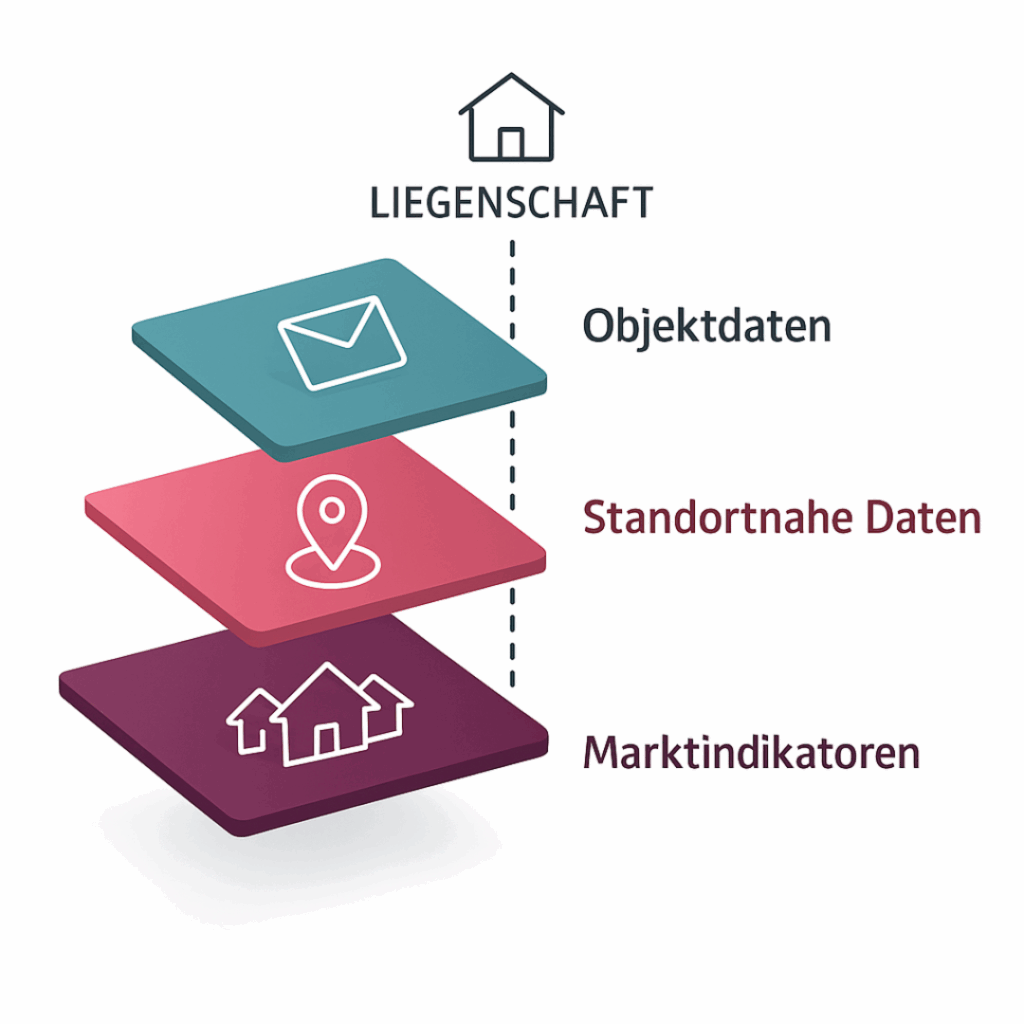 • Die Objektdaten beinhalten einerseits Bodenwerte und Herstellungskosten andererseits liegenschaftsbezogene Sachwertfaktoren, Vergleichspreise, Vergleichsmieten und Liegenschaftszinssätze, die laufend aus tatsächlich durchgeführten Transaktionen abgeleitet werden.